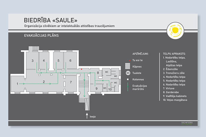 Практичные и безопасные решения с рельефным планом помещений, обозначением кабинетов и путей эвакуации. Вся информация дублируется шрифтом Брайля, что обеспечивает доступность для каждого.