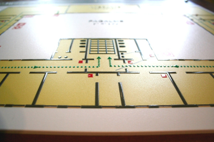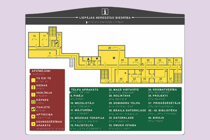 тактильная информация: ориентиры, указатели и направления выполнены рельефом, а